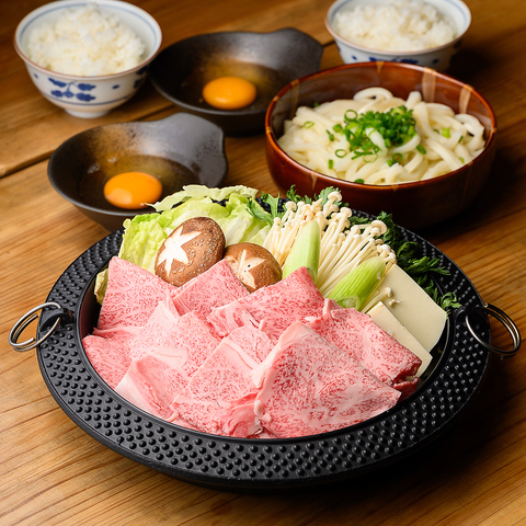 美しいサシが入った厳選和牛と野菜を贅沢に味わう本格すき焼き◎大切な人とのデートや記念日のお食事に♪