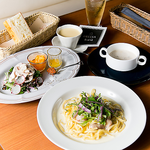 11:00~15:00の時間はお得なセットメニューがおすすめ♪【パスタセット~お好きなパスタ+サラダ+自家製フォカッチャ+お好きなドリンク】【プリンセット~パスタセット+プリン】【パフェセット~パスタセット+お好きなパフェ】OHANAの人気メニューを満喫できるセットです◎