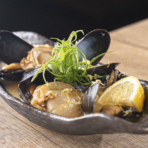 その日仕入れた様々な貝を贅沢に使用した一品です!仕上げに藁焼きの工程を加えることで、通常のワイン蒸しにはない奥深い香ばしさをプラス◎貝から出た濃厚なエキスと白ワインの香りが溶け出したスープは、最後の一滴まで飲み干したくなるほどの仕上がりです。贅沢な海の幸の香りと旨味を存分にお楽しみください。
