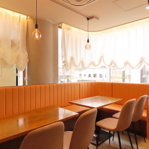 ゆったりとした4名席は、仲間との食事や飲み会におすすめ。料理を取り分けながら楽しく過ごせるため、パーティーシーンにもぴったり。落ち着いた空間でゆっくり過ごせます。