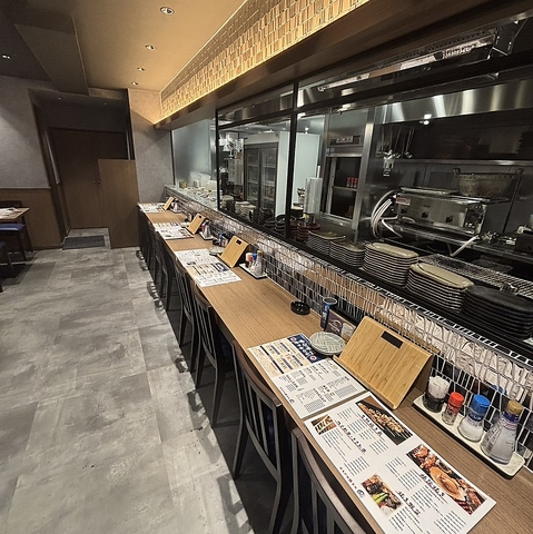 ライブ感溢れるカウンター席は、調理の様子を目の前で眺められる特等席です。お一人様での晩酌やカップルでのデートなど、横並びで会話を楽しみたいシーンにおすすめしております。