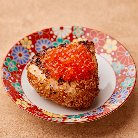 香ばしく焼き上げた炭焼きおにぎりに、いくらをのせた一品です。風味と食感のバランスが◎