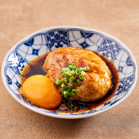 自家製のつくねに、とろりとした卵黄を絡めて楽しむ月見つくねです。コクのある味わいが魅力の一品です。
