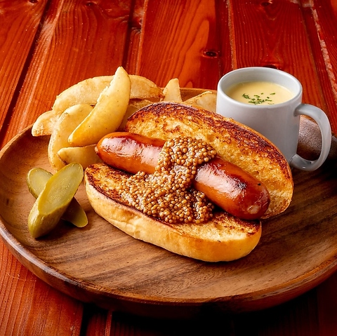 贅沢なブリオッシュパンに、ジューシーなソーセージとプチプチとした食感の粗挽きマスタードがマッチ!