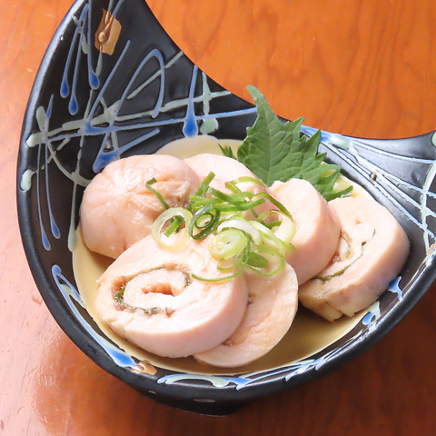 丁寧な調理でしっとりと柔らかく仕上げた鶏肉に、梅肉としそを合わせた爽やかな風味が広がる自慢の鶏ハムです◎さっぱりとした味わいは、箸休めや最初の一品としても最適で、ついついお酒も進んでしまう美味しさです♪こちらは数量限定のメニューとなっておりますので、ご来店の際はぜひお早めにご注文くださいませ!