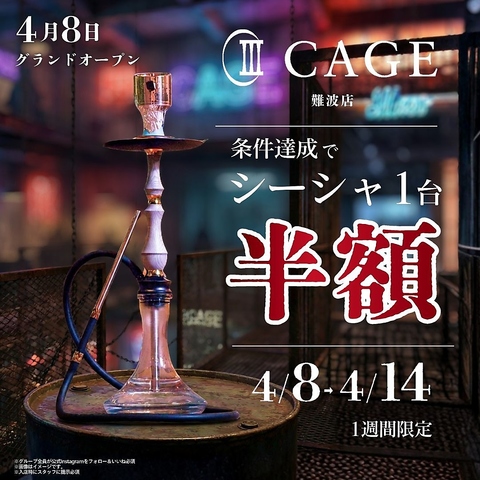 | 店名 | シーシャ CAFE&BAR CAGE 難波店 |