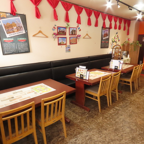 清潔感のある開放的な店内には、座り心地の良いお席を多数ご用意しております。机のレイアウトも変えやすく、少人数でのご利用から、ご家族でのお食事、友人とのパーティーまで幅広いシーンに対応可能です。貸切も可能です。スパイス香る異国の雰囲気を肌で感じながら、絶品インド料理を心行くまでお楽しみください♪