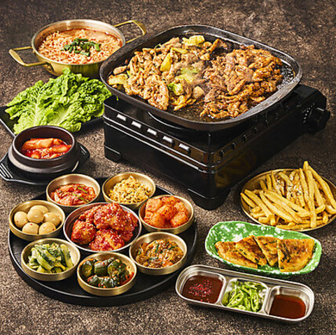 韓国総菜やキムチバーの付いた食べ放題や、サムギョプサルや大判黒毛和牛が楽しめる食べ放題まで種類豊富♪