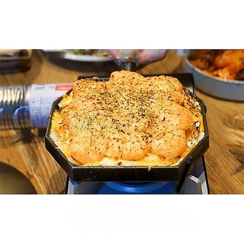 プリプリエビとサムギョプサルのコラボレーション~♪のびのびチーズで更に旨さUP!!!(ご注文は2人前から)