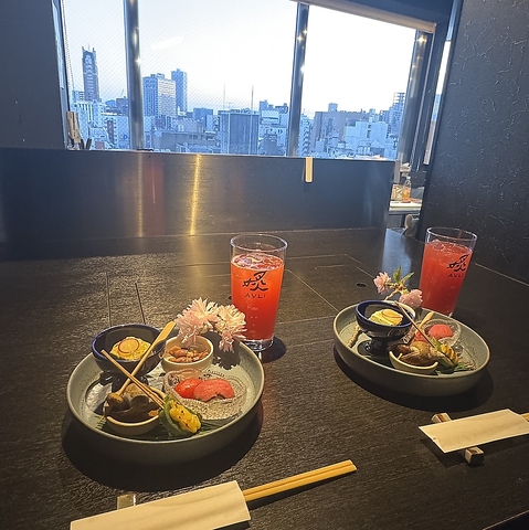 広島を一望できる完全個室。デートや記念日、女子会、合コンにもピッタリのプライベート個室!雰囲気ある空間は女性を華やかに輝かせる煌びやかな大人の空間です。
