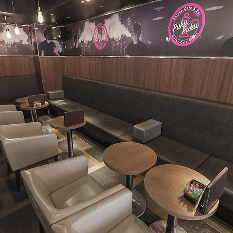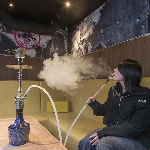 くつろげる雰囲気が魅力のシーシャバー「Puku Puku」♪オシャレな空間は、お食事デートや宴会後にもピッタリ◎多彩なフレーバーを揃え、初心者の方も大歓迎!チョコやチーズ、ナッツ等を各550円(税込)でご用意◎当店はフードの持ち込み可能!出前表もご用意してます。日常を忘れてリラックスしたひと時を心ゆくまでお過ごしください♪