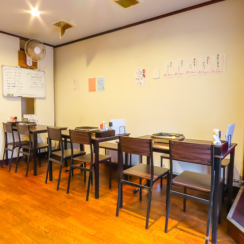 店内は、お一人様でも気兼ねなく楽しめるカウンターを8席、ご家族やご友人との団らんに最適な4名掛けのテーブル席を3卓ご用意◎全20席の程よい広さは、どこか懐かしくアットホームな雰囲気が魅力。自分たちのペースでじっくりとお肉を焼き上げることができます。仕事帰りのサク飲みから、賑やかなお食事会まで、幅広いシーンでご利用ください♪