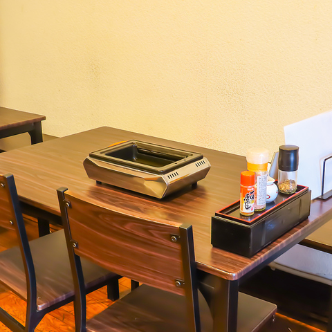ご家族やご友人との団らんに最適なテーブル席です◎4名掛けを3卓ご用意しており、グループでのご利用にも対応いたします。賑やかにお肉を焼けば、会話も弾むこと間違いなし♪ゆったりとした配置で、周囲を気にせずお食事をお楽しみいただけます。