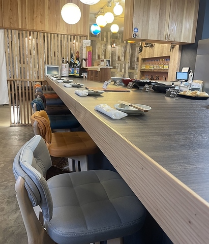 木目調の落ち着いたインテリアが心地よい、大人のための寛ぎ空間。お一人でじっくりとお酒を楽しみたい夜に最適なカウンター席や、友人との語らいにぴったりなテーブル席をご用意しております。シーンに合わせてご利用いただけるので、日常の喧騒を忘れて至福のひとときを。ゆったりとした時間の流れを心ゆくまでお愉しみください。