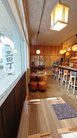 【三の庵】大きな窓から外の景色を眺めながら、開放的な気分でお食事が楽しめるお席です。お隣を気にせず過ごせるゆとりのある配置で、デートや女子会、ご家族での団欒にもおすすめです。その日のおすすめメニューに舌鼓を打ちながら、笑顔あふれる楽しいひとときを。