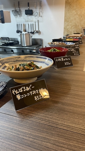 カウンターには、お酒の肴に相応しい滋味豊かな一品料理が並びます。彩り鮮やかなおばんざいや沖縄の旬素材を眺めながら、次の一杯を選ぶのも大人の愉しみ。木の温もりに包まれた特等席で、厳選された銘酒とこだわりの逸品が織りなす、芳醇なマリアージュを心ゆくまでご堪能ください。