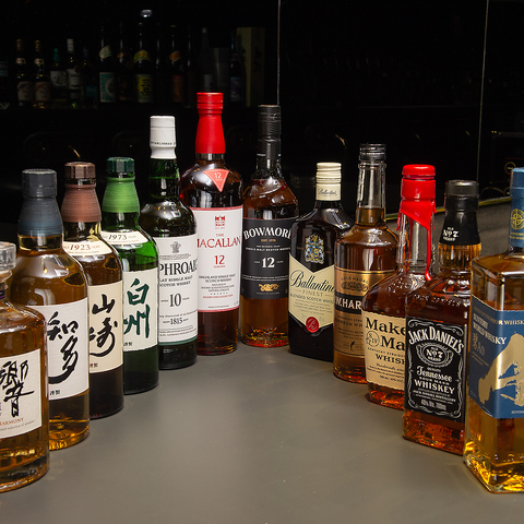 豊富なウイスキーを取り揃えた当店では、山崎や白州といったジャパニーズウイスキーまで幅広くご用意◎