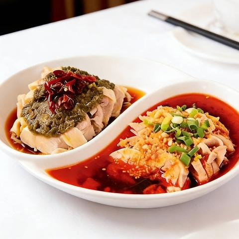 四川伝統の味を再現した、やみつき必至の看板メニューです 。自家製辣油の芳醇な香りと奥深い辛さが、柔らかな鶏肉の旨みを最大限に引き出します 。爽やかな痺れの「青山椒ソース」との食べ比べセットもおすすめです 。本場の刺激的な味わいをぜひご堪能ください 。
