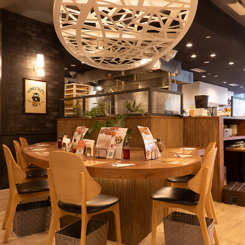 店内にはお一人様やカップルでのご利用に最適なカウンター席を13席ご用意しております◎木の温もりが感じられる清潔感あふれる空間で、周りを気にせずゆったりとお食事をお楽しみいただけます。お仕事帰りのサク飯や、自分へのちょっとしたご褒美ランチなど、様々なシーンで気軽にご活用いただける特等席です。