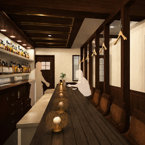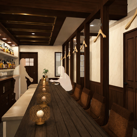 お一人様やデート利用にもぴったりのカウンター席もご用意予定です。(内観はイメージです)【栄 宴会 女子会 誕生日 記念日 個室 貸切 サプライズ 飲み放題 暮れの飲み会 おしゃれ 隠れ家 3時間 肉 チーズ 歓送迎会】