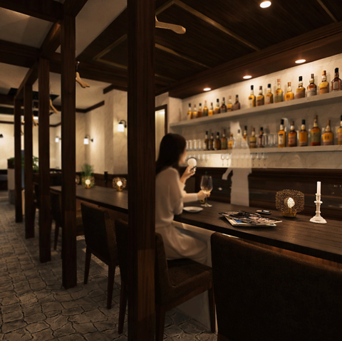 地下へ足を踏み入れると、そこは別世界。やわらかな灯りと静寂が広がる店内。ここでしか味わえない体験を。