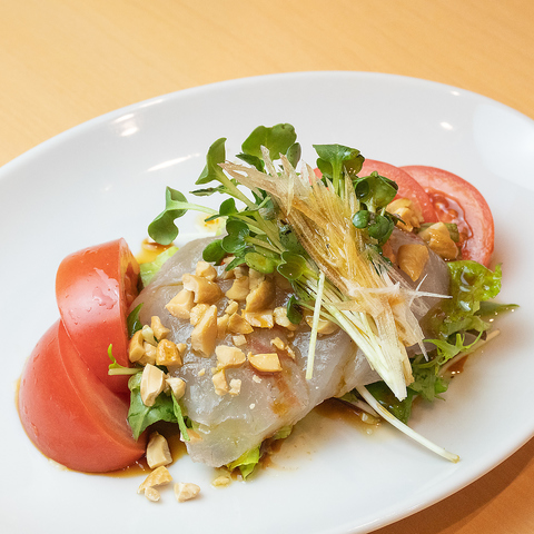 厳選した鮮魚を、中国料理ならではの特製ダレで味わう一皿。香味野菜とごま油の風味が重なり、刺身とはひと味違う奥深い美味しさをお楽しみいただけます。