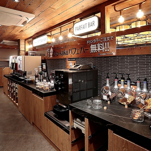 ドリンクバーやオリジナルのパフェが作れるデザートコーナーでお子様も楽しめる♪※画像は系列店です。