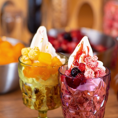 ドリンクバーと一緒にお子様から大人まで、自分で作って楽しいパフェバーが楽しめます♪ソフトクリームにお好きなトッピングかけ放題☆今日はどんなパフェで焼肉を締めくくろう??