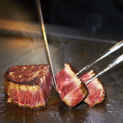 目の前で焼き上げる極上ステーキ。香り、音、旨みが五感を満たす贅沢な鉄板焼ディナーをどうぞ。
