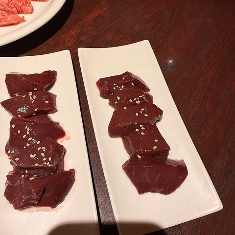牛の肝臓です。弾力性がありますが柔らかい食感で甘味と濃厚な味わいです。