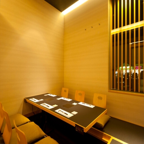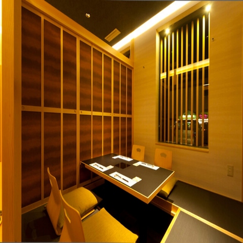 落ち着きある和のしつらえが魅力の個室空間です。仕切られた4名様用の掘りごたつ席は、ご夫婦の記念日ディナーや少人数での飲み会におすすめです。落ち着いた照明に包まれたお部屋で、自慢のお料理やお酒を堪能しながら、誰にも邪魔されない気の置けないお仲間との素敵な時間を、ぜひお楽しみください 。