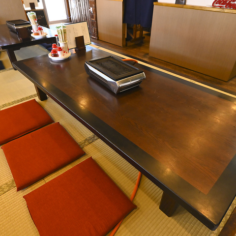 【デート利用に◎】落ち着いたトーンの和空間は、カジュアルな焼肉デートにもおすすめ。靴を脱いでくつろげるお席で、2人でひとつの網を囲んでお肉を焼けば、自然と距離も縮まります。