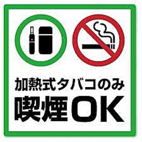 電子タバコのみ喫煙OK!愛煙家のお客様がお食事・宴会の席で肩身の狭い思いをせずに済む、貴重なお店です♪