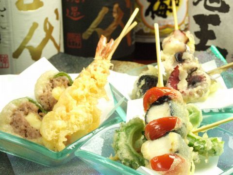 初めて行く人にオススメの串天コース全6品&2時間飲み放題付き♪