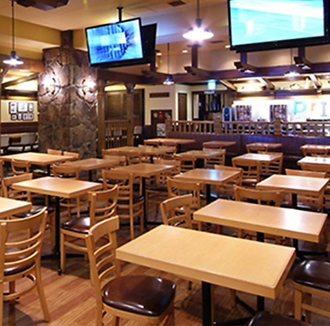 本場アメリカの雰囲気漂うお洒落な店内空間☆ゆったりできるBOXのソファー席も完備しておりますので、周りを気にせずお友達やご家族と楽しく会話しながらお食事をどうぞ♪どんななシーンにもご利用いただける、温かみのある雰囲気のお店です◎