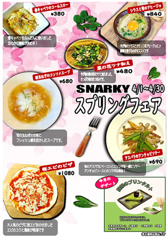 毎日来ても飽きがこない!!今月は《スプリングフェア》を開催しております。当店お勧めの品を各種ご用意。肉バルでの春の味覚の数々をこの機会にぜひご堪能下さい♪