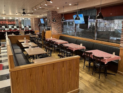 店内は総席数108席ととっても広々♪テーブル席やゆったりくつろげるソファー席をご用意しており、外の景色を眺めながらお食事が楽しめます◎お子様用の椅子も完備しているので小さなお子様連れのご家族も安心です!最大78名様までの大人数パーティーも承っておりますので、様々なシーンで幅広くご利用いただけます♪