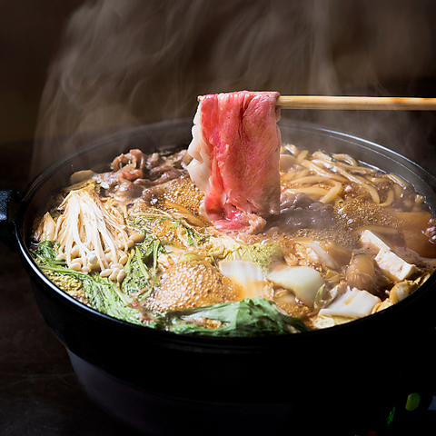 最高級霜降り黒毛和牛を贅沢に使用!口の中でとろける極上炙り握りや、炭火で炙ったサーロインすきしゃぶなど、上質な味わいを堪能できる多彩なメニューが魅力です。