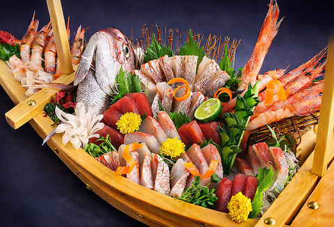 ■完全予約制となっております。■通常オーダー不可・事前予約・事前決済必須。■基本1週間前でのご予約です。■お刺身の内容は仕入れ状況で変更する場合がございます。沖縄の近海魚などを使用した船盛です。(4種~5種)