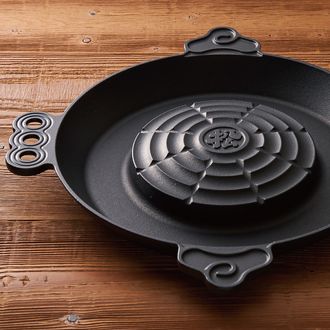 「肉は焼き野菜は煮る」が特徴の松尾ジンギスカンを最大限にお楽しみいただけるよう設計された、特注品の鍋でお楽しみください。