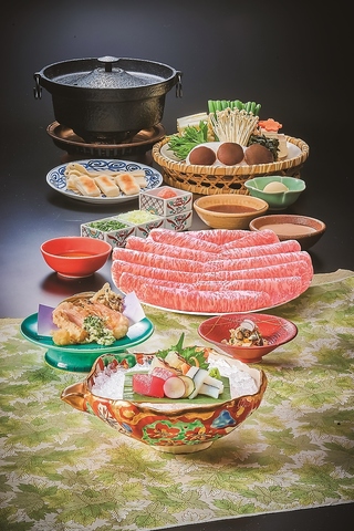 厳選された食材♪厳選された牛肉のしゃぶしゃぶやすき焼き、四季折々の旬の野菜や魚介類など組み合わせた会席料理をお召し上がりいただけます。