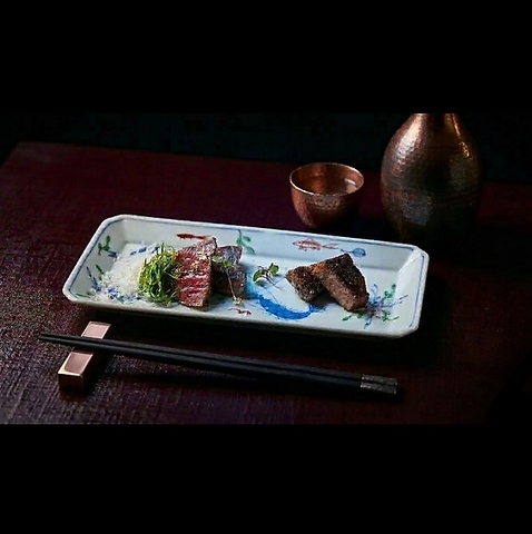 A5ランクの米沢牛の赤身と霜降り部位をそれぞれの味わいで!