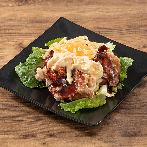まるでグローブ!?な見た目のド迫力!大自然のきれいな水で育った清流若どりのモモ肉を丸ごと1本、秘伝のタレにじっくり漬け込み、衣はザクッと香ばしく中はしっとりジューシーに揚げました。ザクザク食感がたまりません!提供時はスタッフが目の前でカットするので、シェアにもぴったり!相性抜群のハイボールやレモンサワーと一緒にどうぞ!