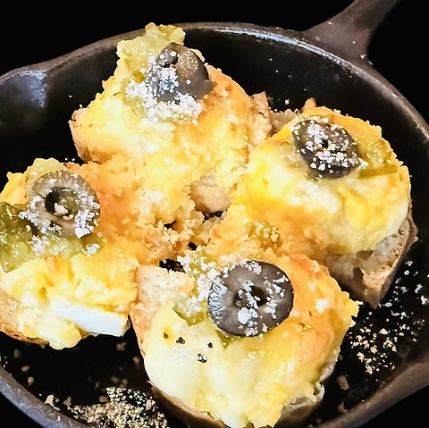 人気のいぶりがっこのポテサラをチーズ乗せて焼いちゃいました バケットに付けてどぞ
