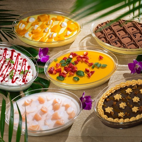 季節のカットケーキ、アイスクリーム、季節替わりのデザート(4月から6月ティラミスとプリン、7・8月ナタデココ杏仁豆腐とマンゴープリン、9・10月チョコレートムースとレアチーズ)