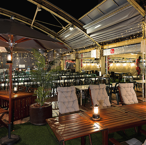雨天でも、5ブロックの電動式スライドテントが閉まりますので、安心してお楽しみいただけます。貸切も承りますので、お気軽にお問い合わせください。