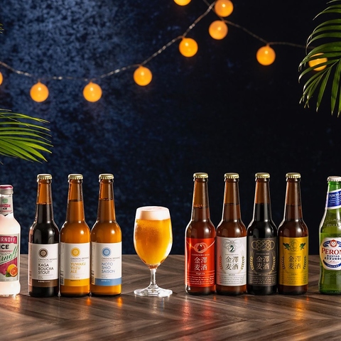 スタンダードプランではクラフトビール6種、日本酒 冷酒 3 種、生ビール8種など豊富なラインナップからお好きなドリンクをお楽しみいただけます。プレミアムプランでは、スタンダードのドリンクメニューに加え、金沢地ビールコレクション7種とプレミアム海外ビールをご堪能いただけます。