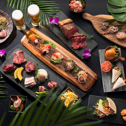 牛肩ロース、牛フィレサイド、牛中落カルビ、牛ハラミ、美川の上シロ、シーフード、焼野菜など豊富なグリルメニューをご用意いたしました。お好きなメニューをお好きなだけ、テーブルのグリルで焼いてお楽しみください。