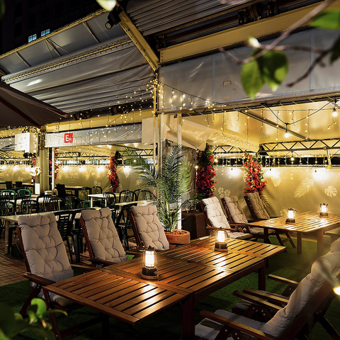 雨天でも、5ブロックの電動式スライドテントが閉まりますので、安心してお楽しみいただけます。貸切も承りますので、お気軽にお問い合わせください。