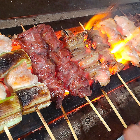 一本一本丁寧に串打ちしたやきとりを、少人数でも多くの種類をお楽しみいただけるように、焼き鳥、串とん、焼き野菜も一串からご注文できます。素材の旨味をしっかり閉じ込めたこだわりの一串をお楽しみください。